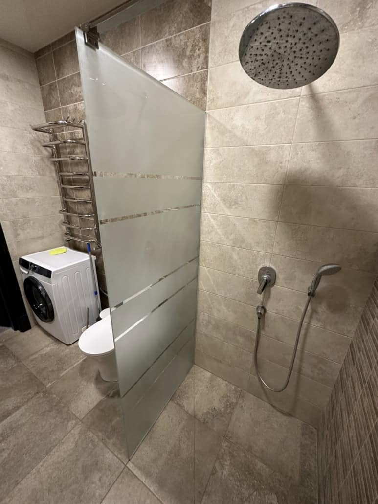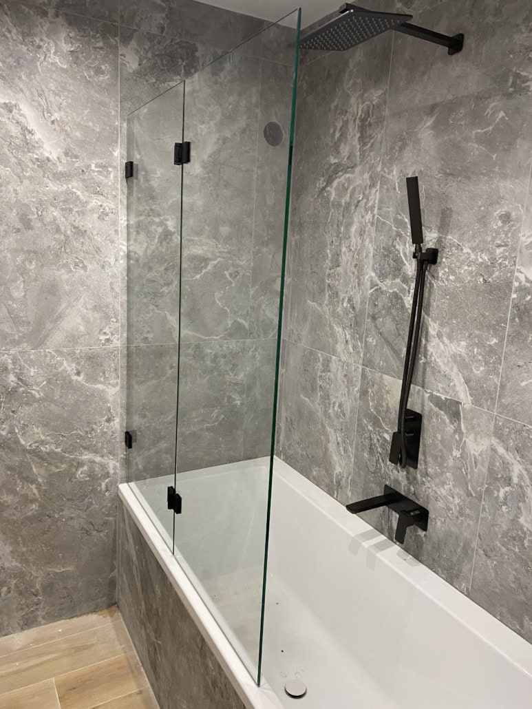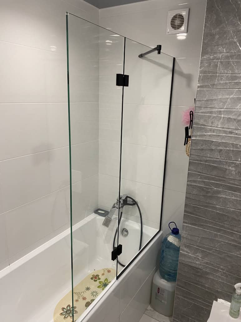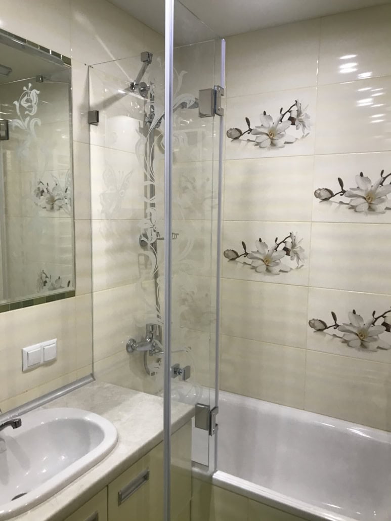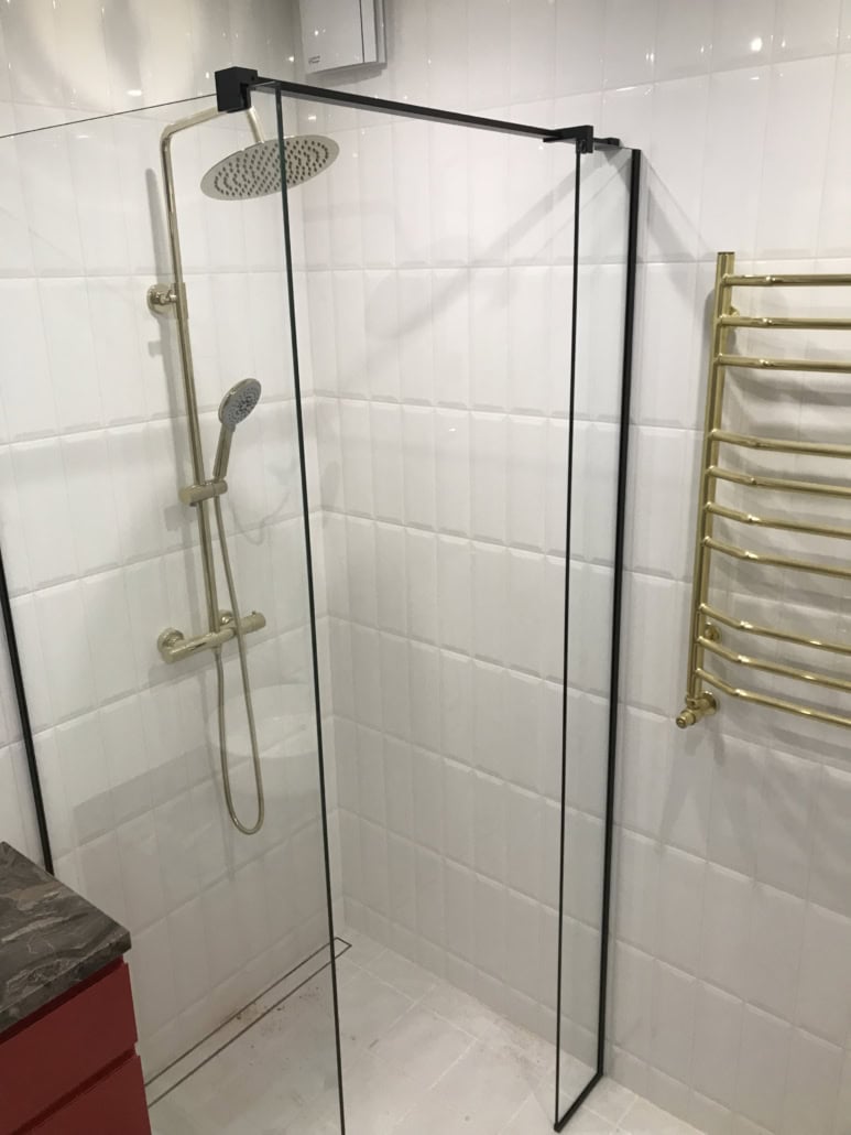 Современное исполнение в черной или полированной фурнитуре, с использованием качественных Европейских комплектующих. Закаленное стекло 8 мм обеспечивает безопасность при использовании. Так же есть варианты с фурнитурой в цвете «хром», и стекла — «графит» или «бронза». Изготавливается по индивидуальным размерам заказчика.